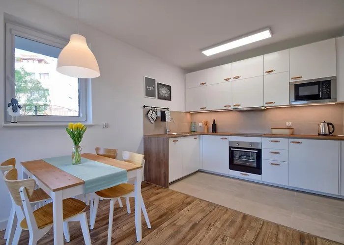 Apartament Bursztyn 2 oferuje pełnowymiarową kuchnię z piekarnikiem i zmywarką do naczyń do przygotowywania własnych posiłków. Apartament Bursztyn 2 znajduje się zaledwie 10 min pieszo od najbliższego przystanku autobusowego Jedności Narodowej - Kościół 2 nr 04.